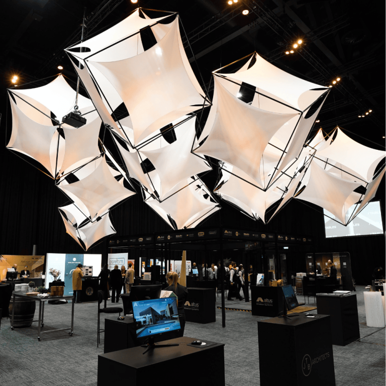 For the ArchiPro Home Design Evening at Te Pae Christchurch, our giant lycra cubes were designed to create immediate impact within the high ceilings of the venue’s exhibition halls.