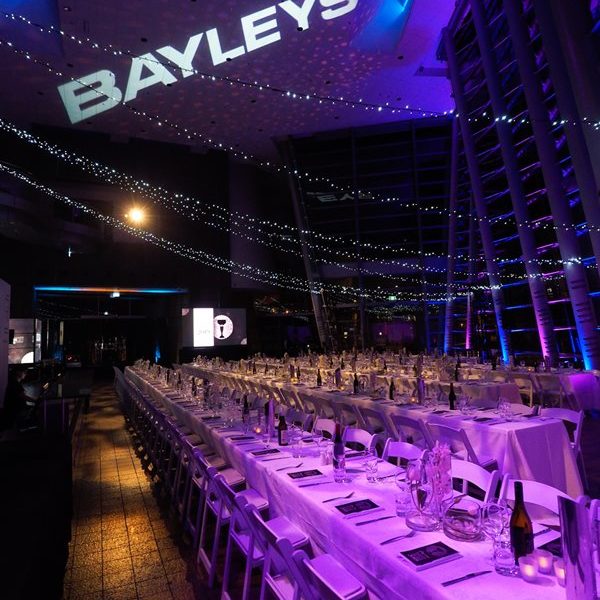 The main space was revealed and guests took their seats under a canopy of fairy lights strung from the roof. A large LED screen displayed the award winners. Lighting effects, including a custom gobo created amazing reflections in the gallery windows and on the roof. An intimate lounge area was created for those not keen on the dance floor.