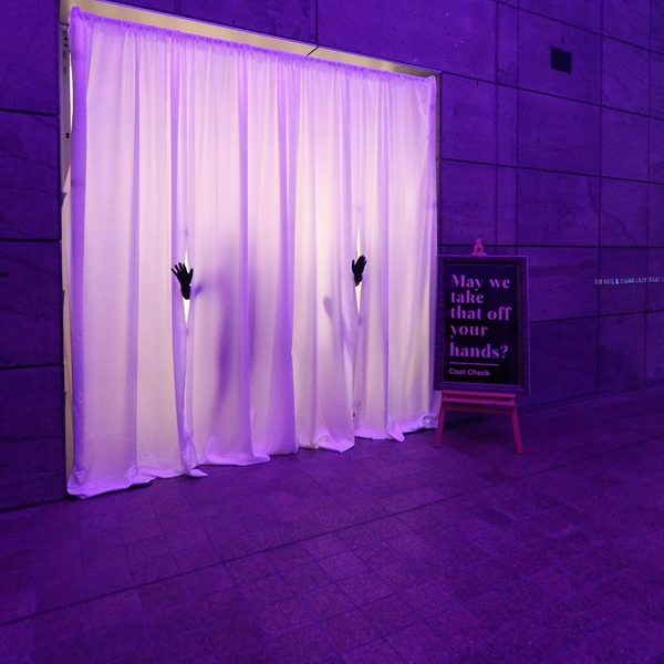 Guests were welcomed to the entrance by a dramatic sky-tracker effect, and once inside were greeted to a ‘mystery hand’ coat check station, thanks to Epic Entertainment. Photo opportunities were amongst the pre-drink space, with our well-lit media wall backdrop and a custom-built champagne wall.