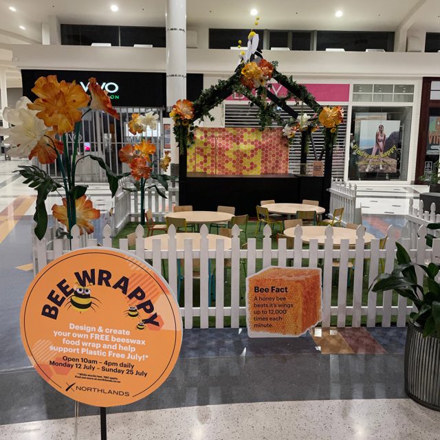 We have been created a buzz at Northlands Mall around their ‘Bee Wrappy’ school holiday activation. Our team were tasked with creating a fun and eye-catching space for kids, to create their very own eco-friendly beeswax wrap!