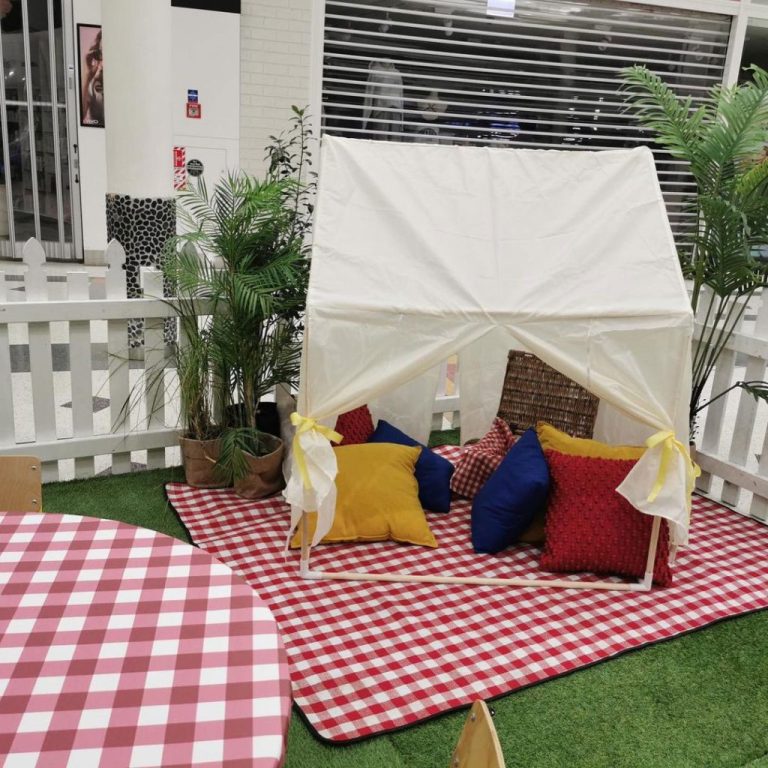 Using the classic children’s song ‘The Teddy Bears Picnic’ as inspiration we created a fun space providing all the practical requirements as well as cute photo moments.