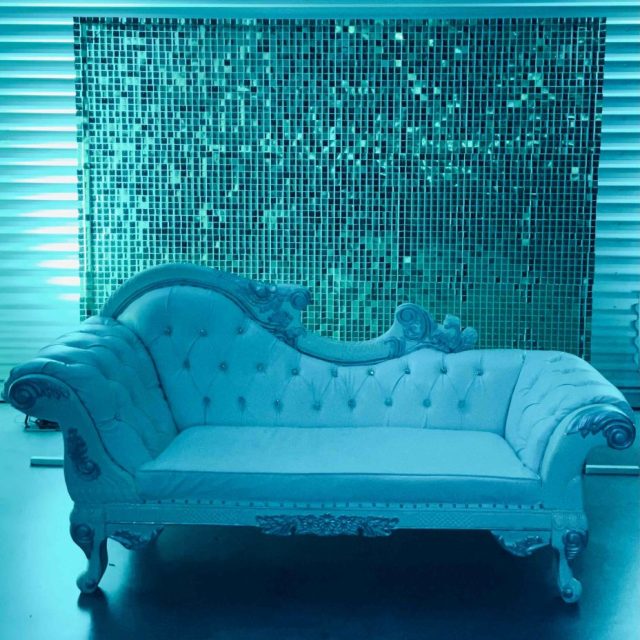 Our mirror ball cluster rotating in the centre of the room threw sparkle into the space to mimic the movement to being underwater. Centrepieces carried through the theme with miniature ancient ruin columns (3D printed using recycled plastic), nestled amongst shells, coral and magical blue sea lights.