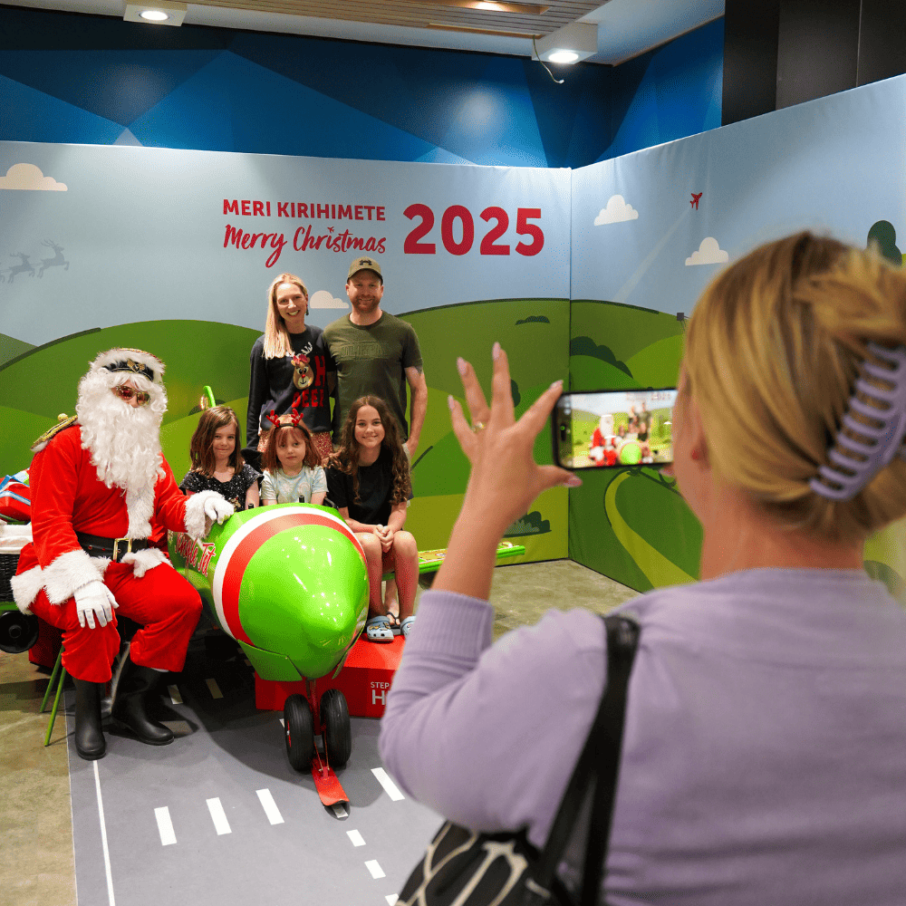 This festive season, an empty store space at Christchurch Airport was transformed into a magical aviation-themed Christmas experience. Featuring the custom-designed interactive ‘Jingle Jet’ with moving parts, lights, and cockpit buttons that activate fun sounds. Airplane motif snowflakes, sleighs under the wheels, and a giant Santa sack full of gifts provided unique Christmas photo opportunities. A runway carpet and control tower added playful, practical touches to the immersive display.