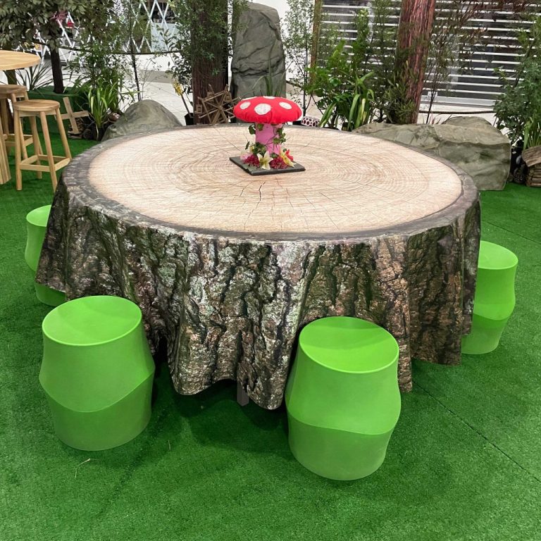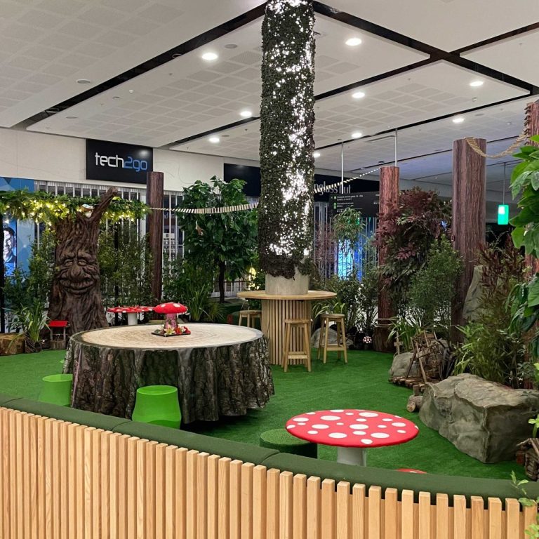 8 trees, 9 tree trunks, 10 rocks, 40sqm of astroturf, custom furniture, loads of ‘fairy’ doors/props plus a whole lot of plants were brought together with a sprinkling of ThemePro magic to create this fun and interactive zone.