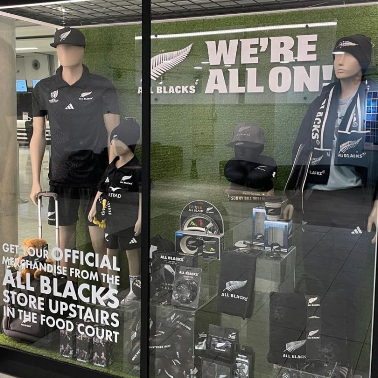 To show their support for the All Blacks Christchurch Airport asked us to create a photo moment for insta worthy snaps and a mannequin display showcasing all the fantastic supporters gear you can purchase from their All Blacks store.