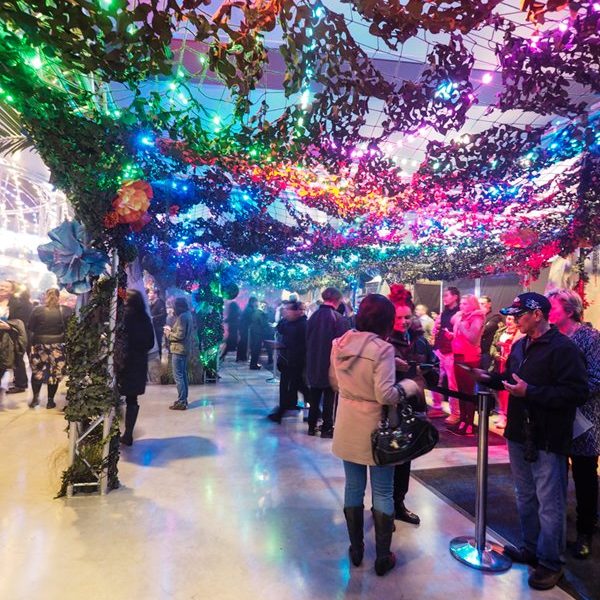We worked with the Vbase team to ensure guests were fully immersed under a Pandora-style canopy of foliage, giant flowers, glistening fairy-lights and amazing LED colour-changing light effects. As guest walked through they were greeted by the ‘Tree of Souls’ filled with changing lights and butterfly details. The tree proved popular with guests, with many taking the opportunity to get photos in front of the central suspended feature.