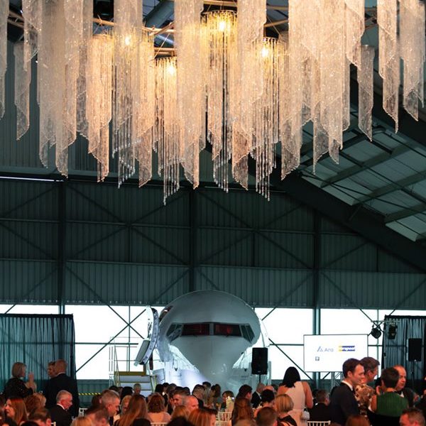 Theme Productions was honoured to be supporting Christchurch City Mission for their annual charity gala dinner, held within the massive Air New Zealand Hangar 5. The red carpet was rolled out for guests upon arrival, flanked either side with landing lights, fitting with the airport runway environment.