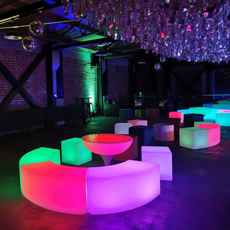 Mirror balls, sequin walls, LED furniture, mila tunnels and rainbow colored parcans transformed Milton st substation into a sparkly technicolored groovy space for the senior students of Rangiruru to dance the night away in at their formal last night.