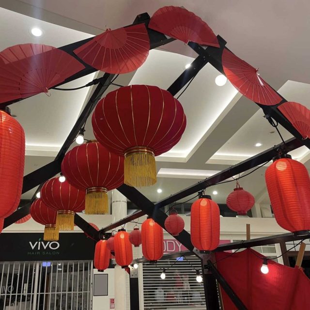 We installed a couple of our giant fans along with a selection of decorative lanterns and smaller fans to transform an existing structure inside the shopping Centre. The Lunar New Year celebration is centered around removing the bad and the old, and welcoming the new and the good. It’s a time to worship ancestors, exorcise evil spirits, and pray for good harvest.