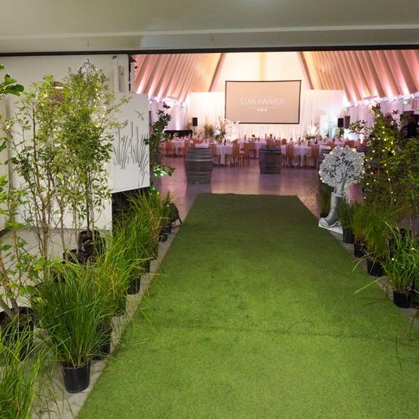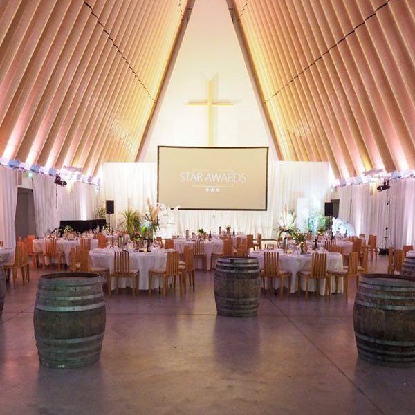 Pernod Ricard held their dinner celebrations after a 2-day conference at multiple venues at Cardboard Cathedral. Theme Productions were across multiple venues for their conference days. The final night at Cardboard Cathedral was transformed into a glam Kiwiana themed space. Guests were welcomed down an Astroturf carpet, flanked either side with native plants intertwined with fairy lights.