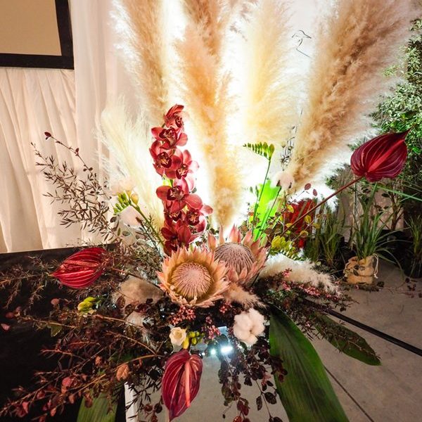 Thanks to Downies for providing the flowers for us to create these pieces. A custom stage skirt added to the overall look on stage.