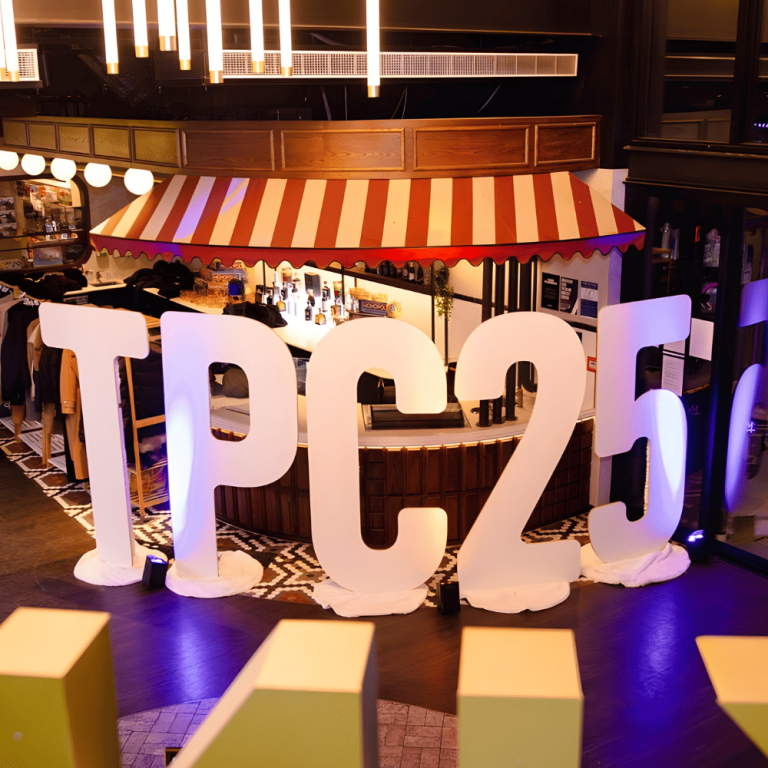 Custom-branded bowling pins and giant illuminated letters added a playful yet polished twist at Kingpin’s welcome function.