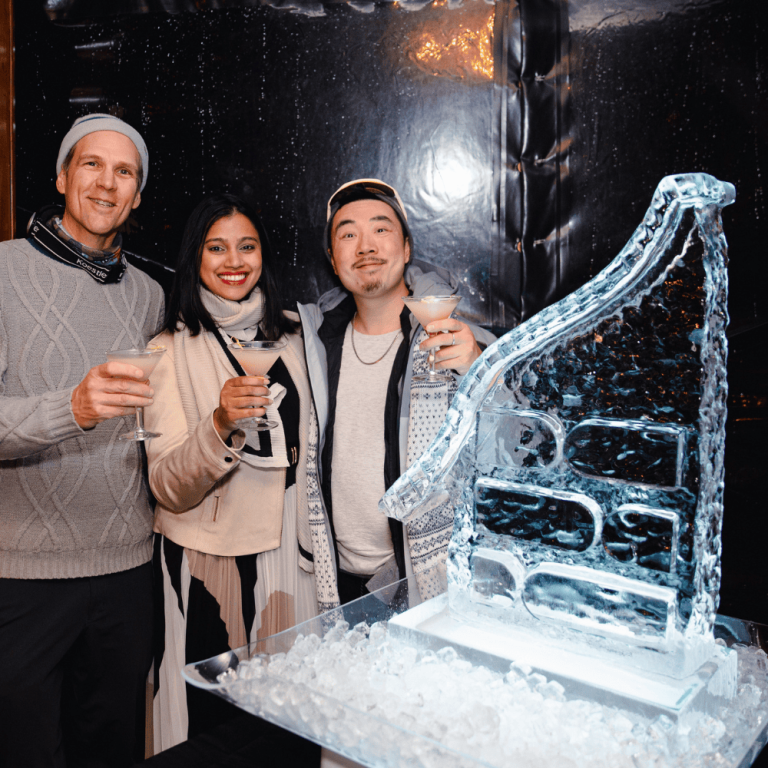 Timber signage arches, frosted Christmas trees, glowing antler chandeliers, luxe draping, bar leaner centrepieces, and a cosy VIP zone transformed Ayrburn into a snow-kissed après ski wonderland.