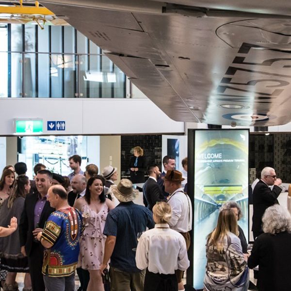 Seequent held their annual awards dinner at The Air Force Museum, Conference, and Events Hall for their ‘Around the World’ Travel theme. The challenge was to create an event celebrating how diverse Seequent is. Theme Productions had the pleasure of managing the evening. Guests were dressed to the nines for the travel-themed evening. They were greeted down a black carpet and Epic Entertainment air hostess. Custom signage was placed around the cocktail area with an airport-themed design.