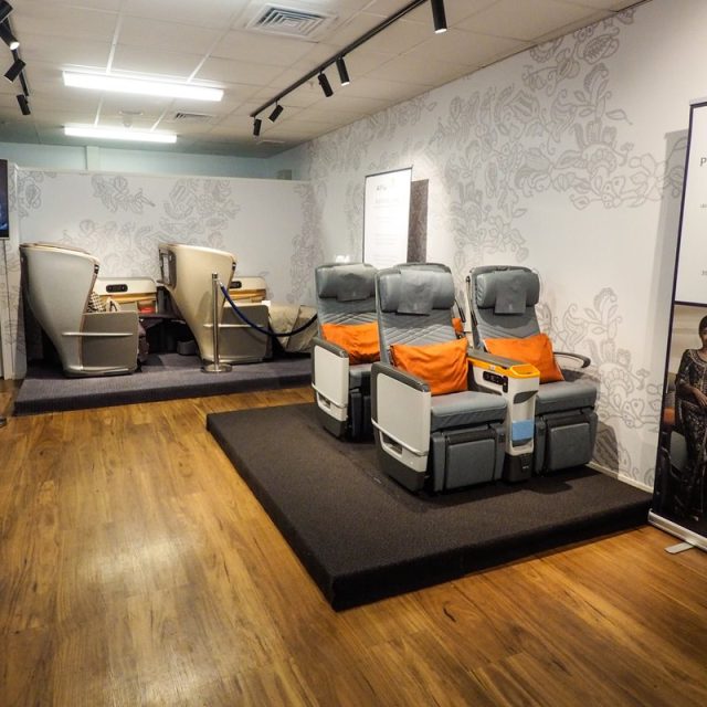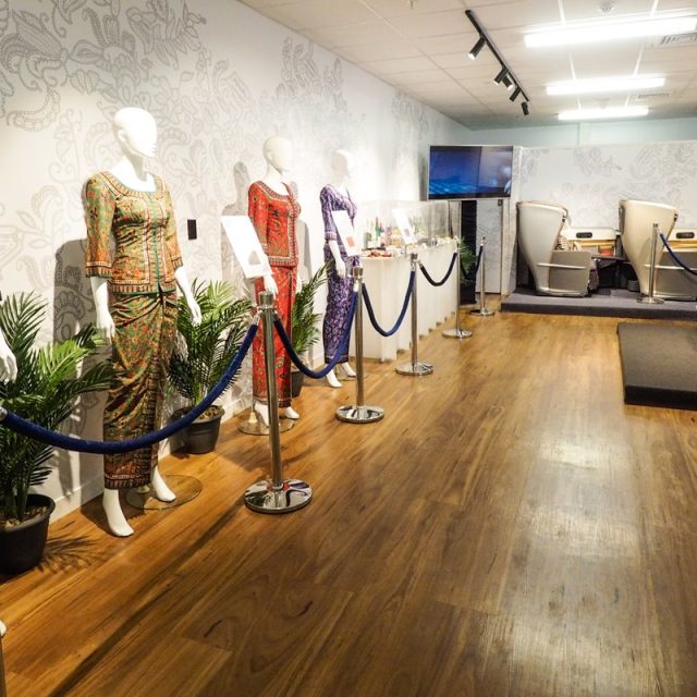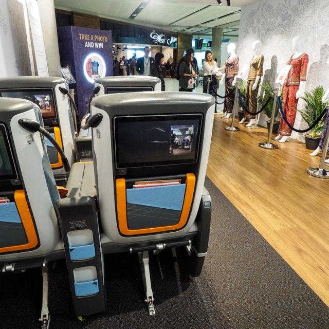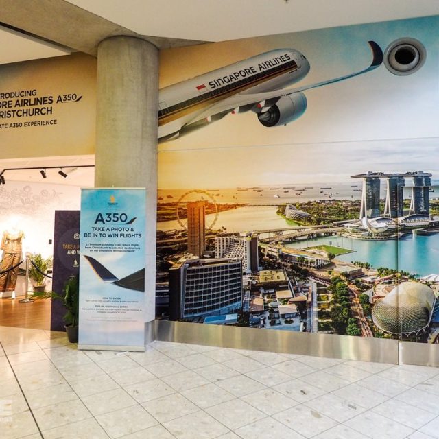 To celebrate the arrival of Singapore Airlines A350 new to Christchurch Airport, the airline created an installation space within the Christchurch Airport terminal, showcasing a glimpse into the experience when flying on the A350. Theme Productions created clear acrylic display boxes, displaying the range of food options and entertainment of each section within the flight experience. Our mannequins were dressed in all of Singapore Airlines flight attendant ranks, with our new display holders explaining the colour rank meanings. Our TV on a truss stand displayed a short film of the A350, and business class and premium economy seats were available for guests to sit and interact with for a full emersion experience.
