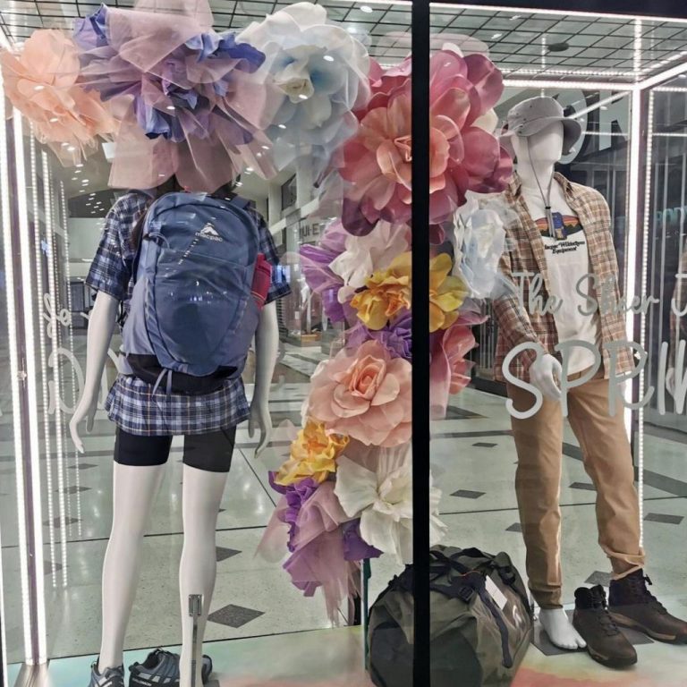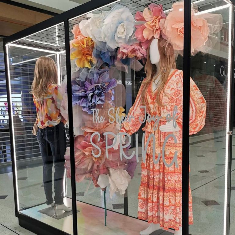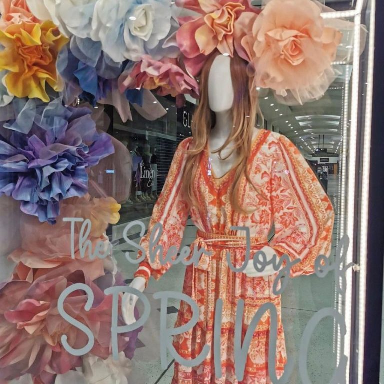 The team continuing to spread spring cheer through the city… this time at Northlands NZ where pretty pastel oversized flowers have woven their way into the mannequin display cabinets, complimenting the new spring fashion arriving in stores.