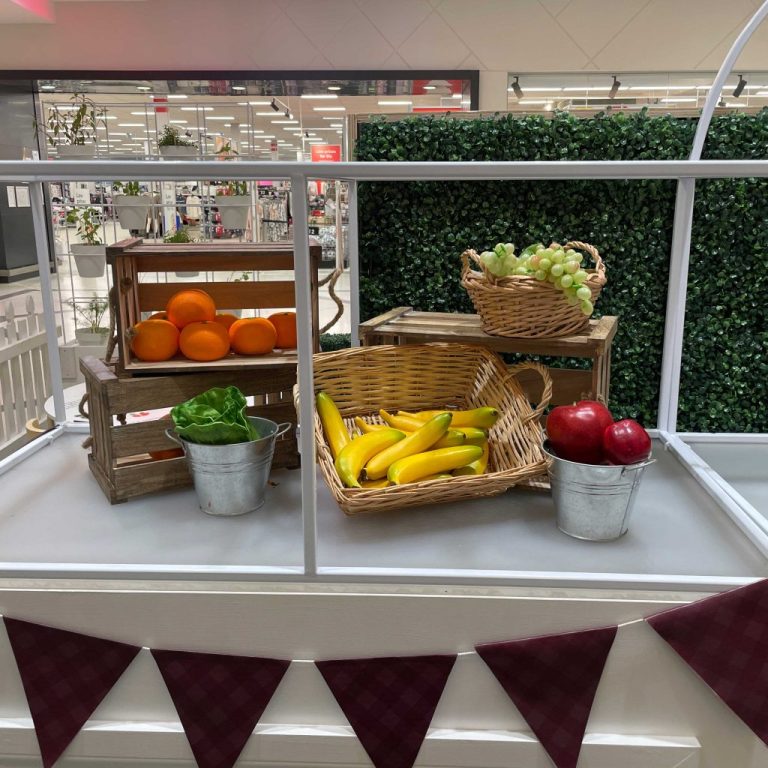 Inspired by a broader campaign throughout the Centre (‘For your love of nature’), we made sure the space was jam packed full of fruit and vegetable inspired fun facts, jokes and custom designed games.