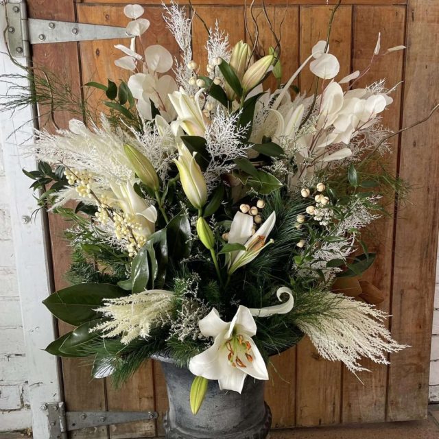 The Christmas lilies were a highlight of the display. Not only did the lilies look beautiful incorporated into the décor, but their fragrance accentuated the festive feel!