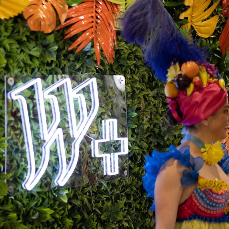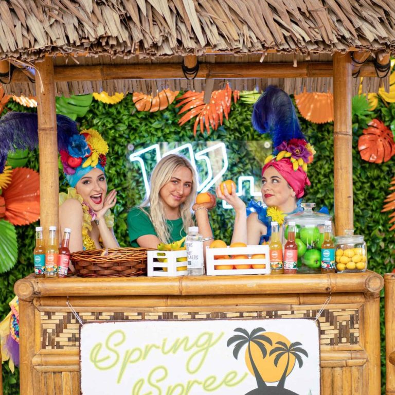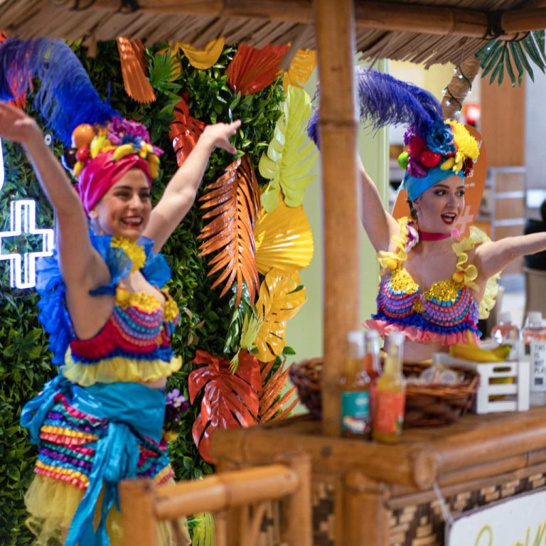 Two absolutely amazing girls from Epic Entertainment spread their smiles and dance moves across the mall and handed out free tropical juices for W+ members.