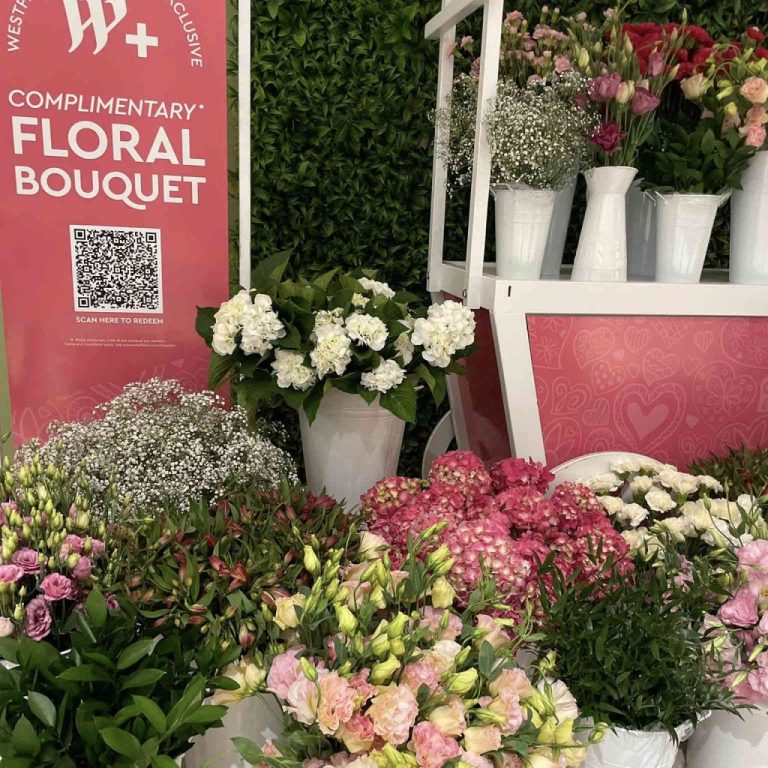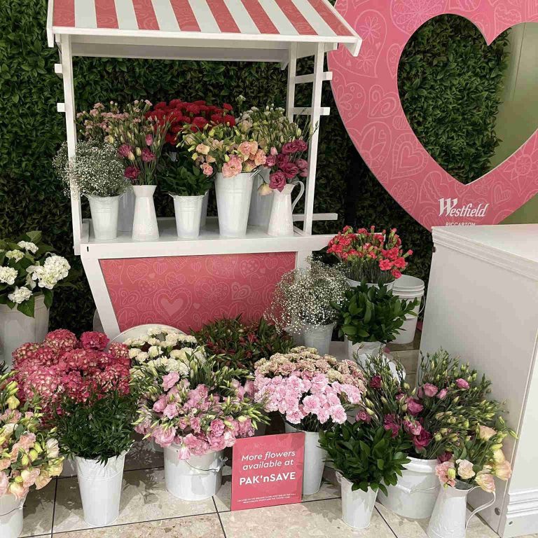 The flower bar was situated in the cafe court on level 1 Westfield Riccarton. Ready for W+ members to select a stunning selection of flowers for a gorgeous bouquet to impress their Valentine