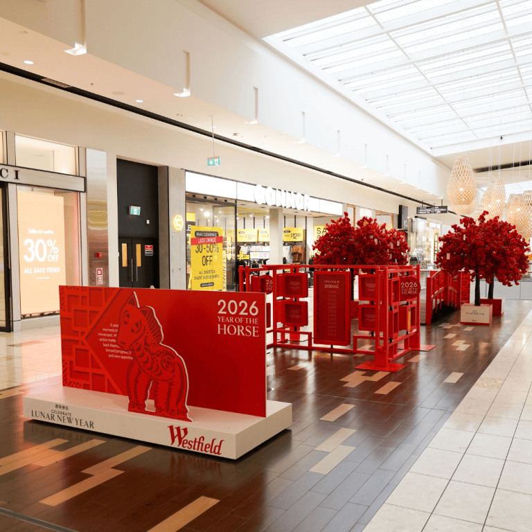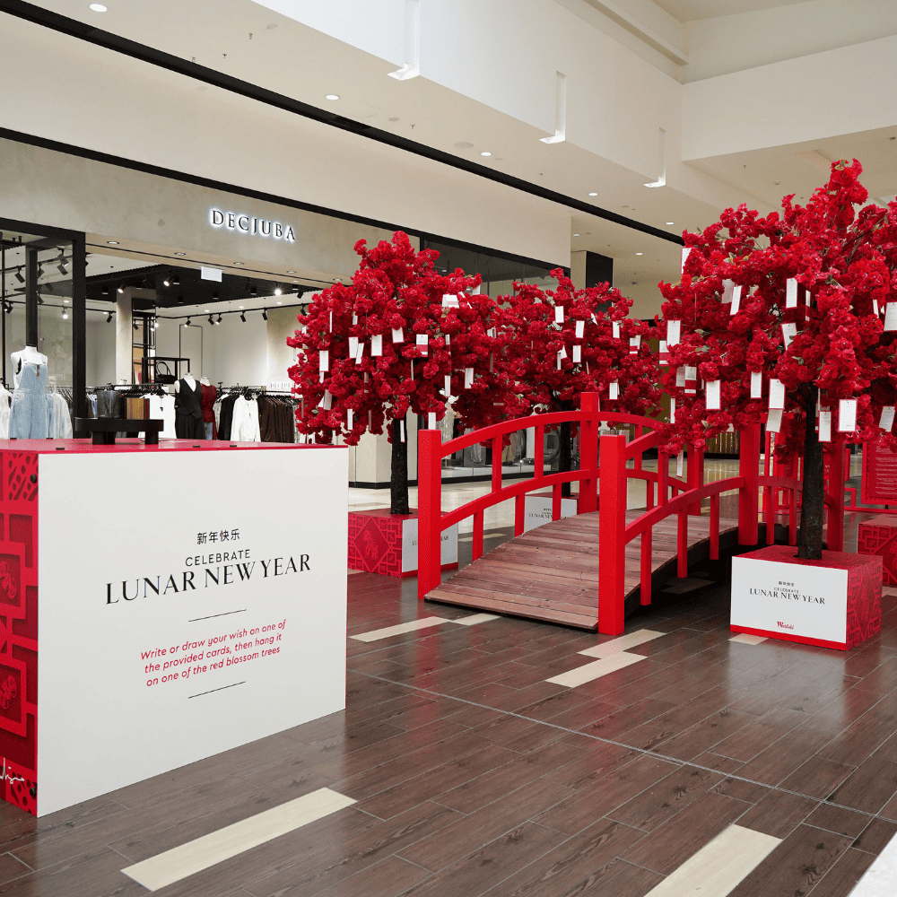 The 2026 Lunar New Year marked our sixth year installing our much-loved red cherry blossom wishing trees at Westfield Riccarton Mall.