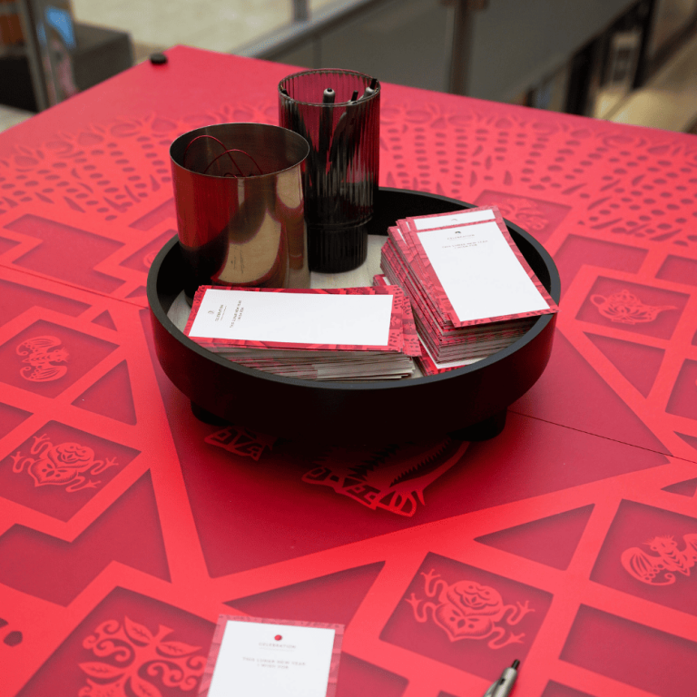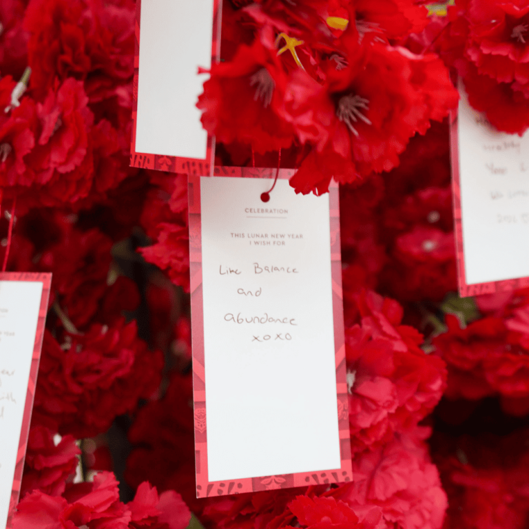 Customers love returning each year to hang their wishes, and this year we expanded the installation to include more trees with a new custom-built prosperity bridge to provide easier access to the higher branches and also provide a fun photo opportunity.