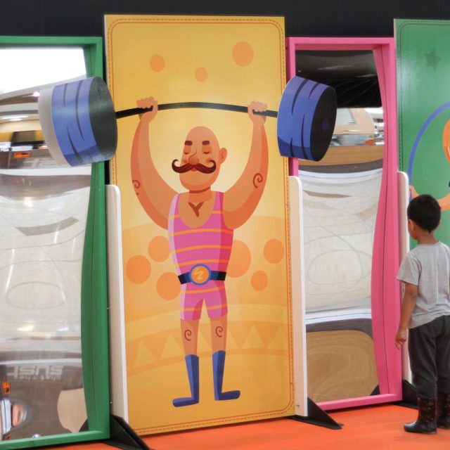 For weeks before, we have been building and creating lots of parts and things for this install. Not only have we built the big arch, but also have we made crazy mirrors and big, vibrant polystyrene letters spelling “PLAY”.