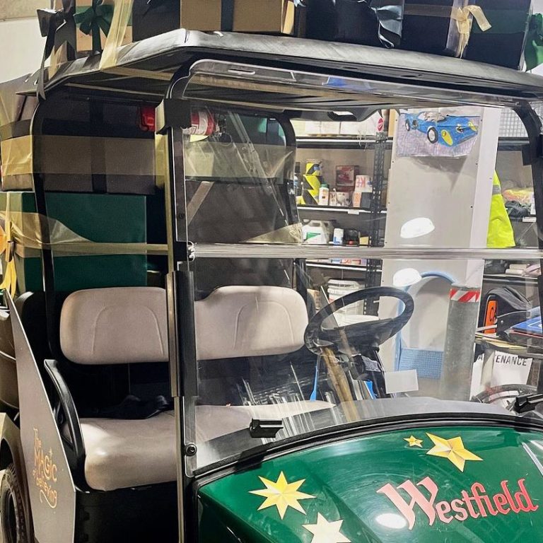 We always love being involved with the talented team Epic Entertainment to create magical experiences! Heaps of gift-wrapped presents helped set the scene on stage and transform a golf cart into a ‘sleigh’ to celebrate the arrival of Santa Westfield Riccarton NZ.