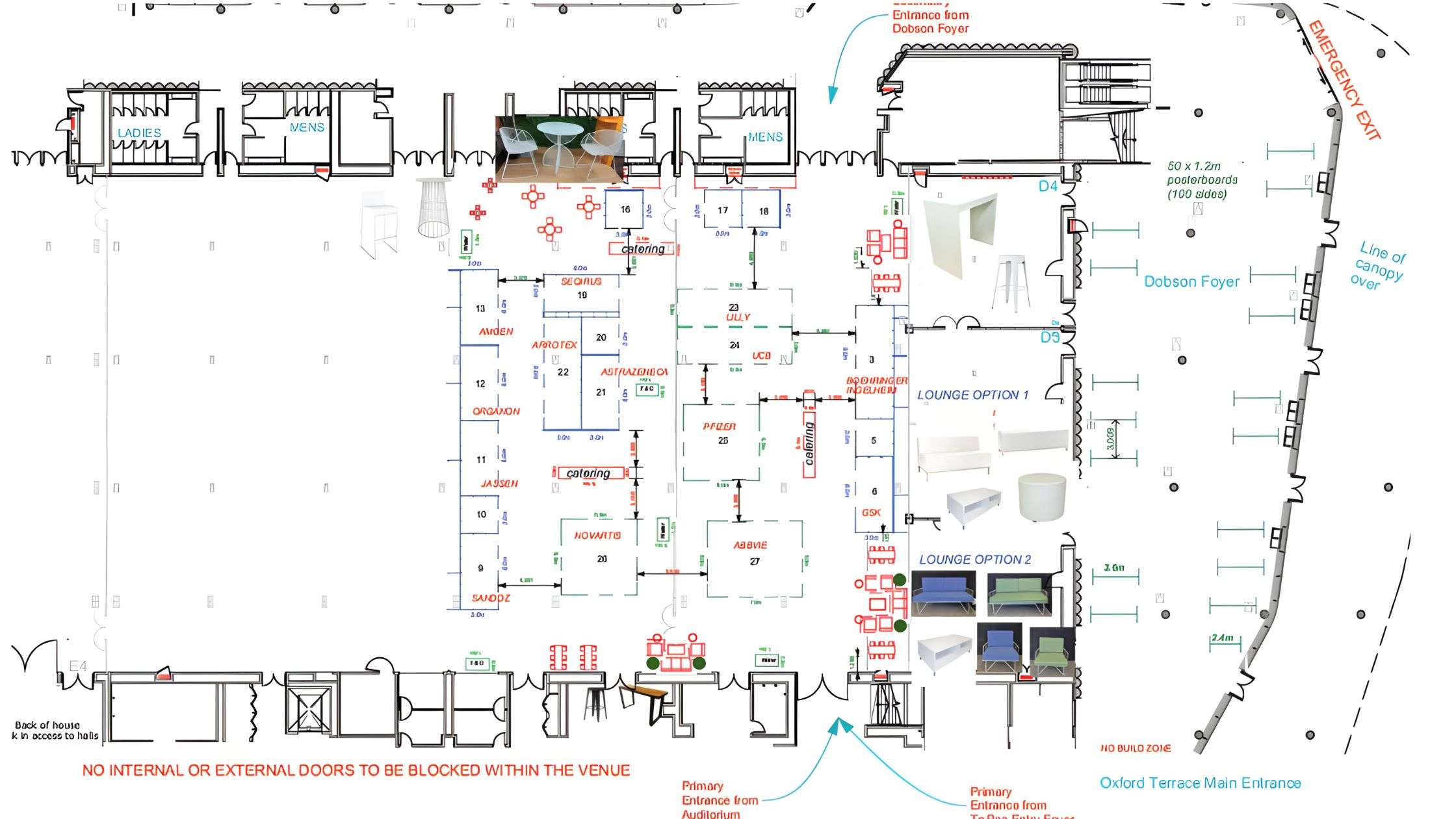 - Venue access points and dimensions