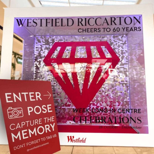 Stunning 60th anniversary activation featuring custom displays, floral designs, and interactive celebration spaces.